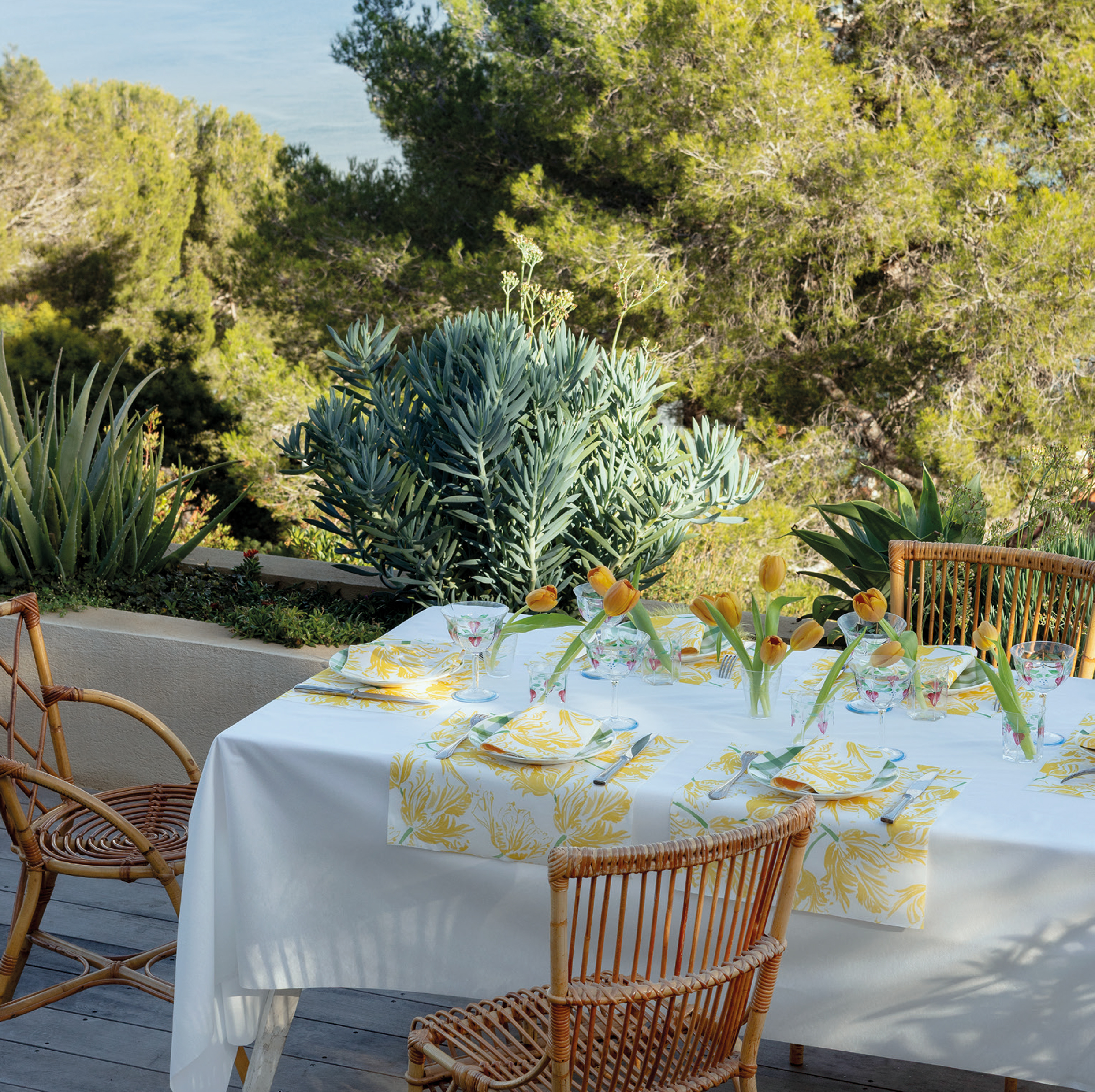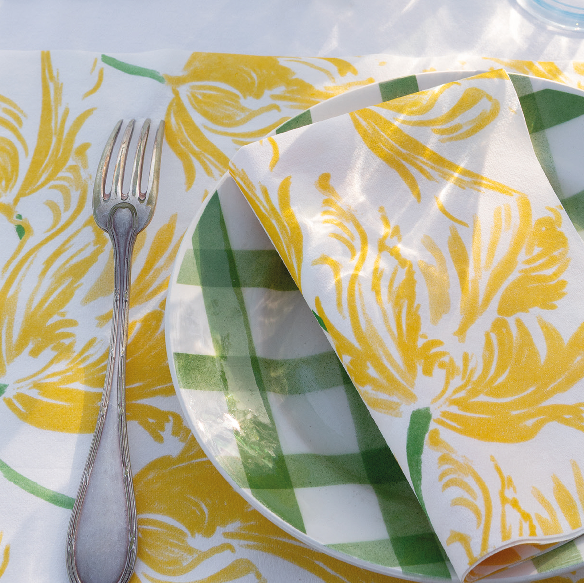 Die ersten Sonnenstrahlen bringen eine vorfreudige Leichtigkeit mit sich: das erste Mal den Tisch im Garten decken, das erste gemeinsame Grillen mit Freunden. Die Atmosphäre ist offen, unbeschwert, lebendig. Feine Servietten setzen gezielte Akzente, Materialien wirken luftig und stilvoll.