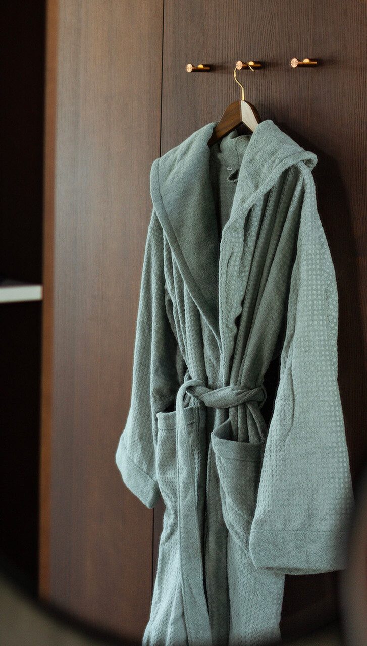 Delicacy that caresses the body, for a moment of personal well-being. Our bathrobes are crafted from fine yarns, offering a style suited to every comfort experience.