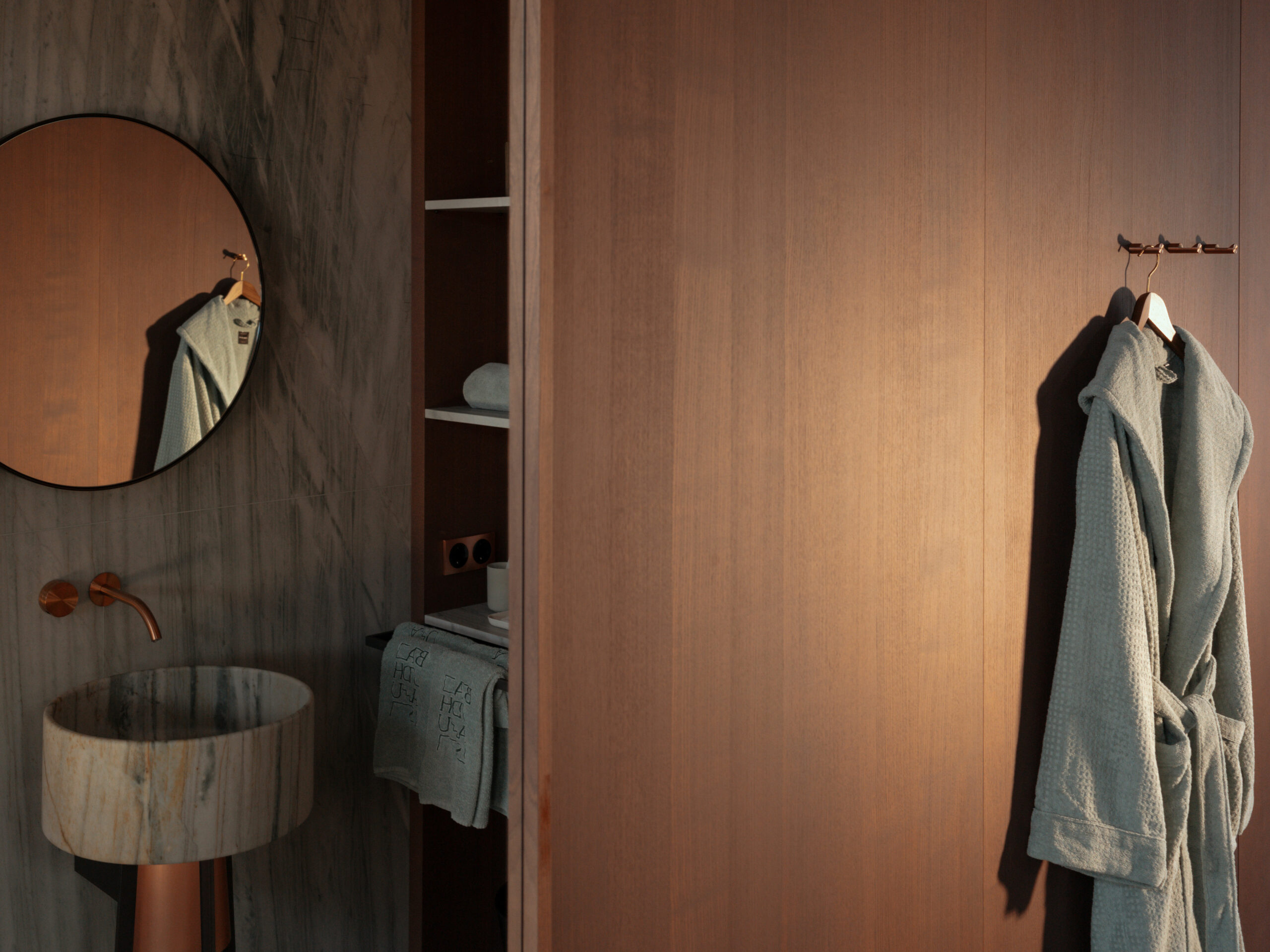 The door closes.The guest sets down their bag, draws the curtain to admire the view, and begins to savour that wonderful feeling of being on holiday. They step into the shower, let the water flow gently over their skin – slowly – and then wrap themselves in the comforting embrace of a soft bathrobe.