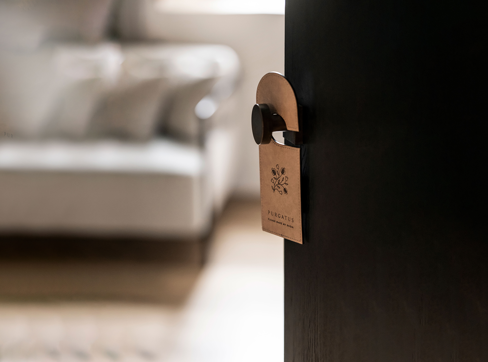Timeless design and tasteful materials make these practical door hangers truly special!Crafted from fine leather or faux leather, linen, loden, felt, or even cellulose – each piece is made with the highest level of handmade quality. The only choice left to make: embossing, embroidery, or perhaps screen printing? Elegant details for moments of undisturbed tranquility.