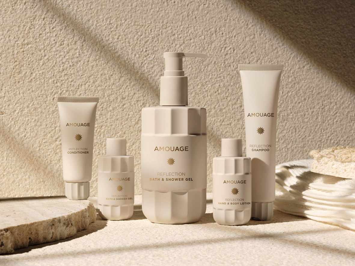 Over the last forty years, Amouage’s creations have enchanted perfume enthusiasts and connoisseurs all over the world. For the first time, the house is now combining its famous expertise into a hotel collection based on their signature scent of Reflection, one of Amouage’s finest and most distinctive fragrances.